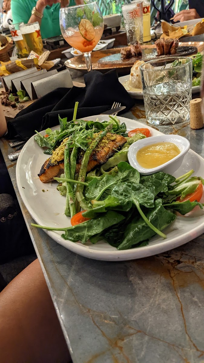 Service was good. The venue was modern. Prices were ok. Food menu was varied, the new york and the shrimp tacos were very tasty. Esquites were very tasty. Dulce de leche molten cake was tasty, maybe too many garments (red fruits and jelly) and it can be more simple. Cocktails were good. Had the kiwi mezcal one. Overall a good option to eat in Merida.